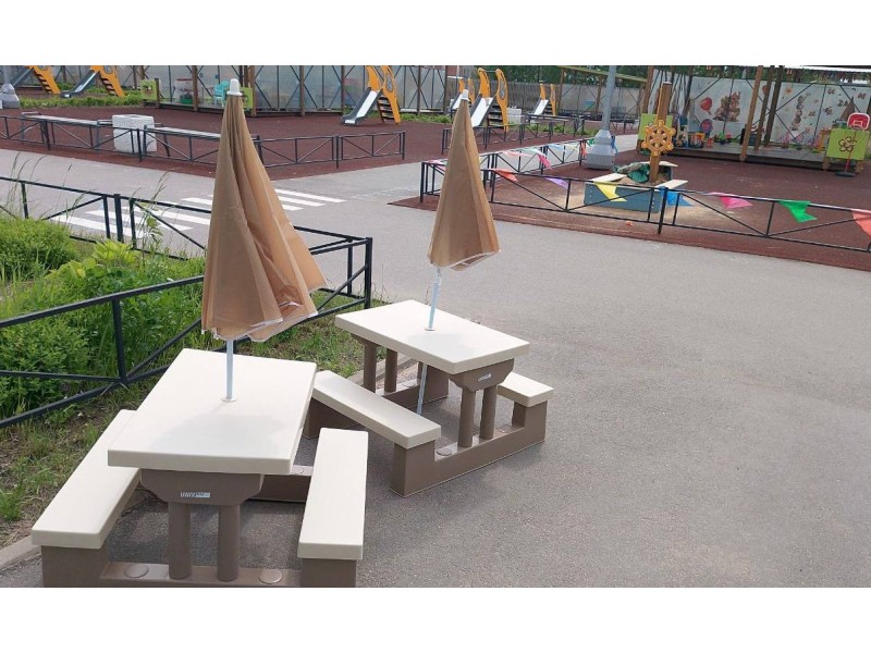 • Детских пластиковых столов со скамейками для игр и занятий.
